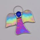 Angel in aqua wings and cobalt body iridescent opalescent glass