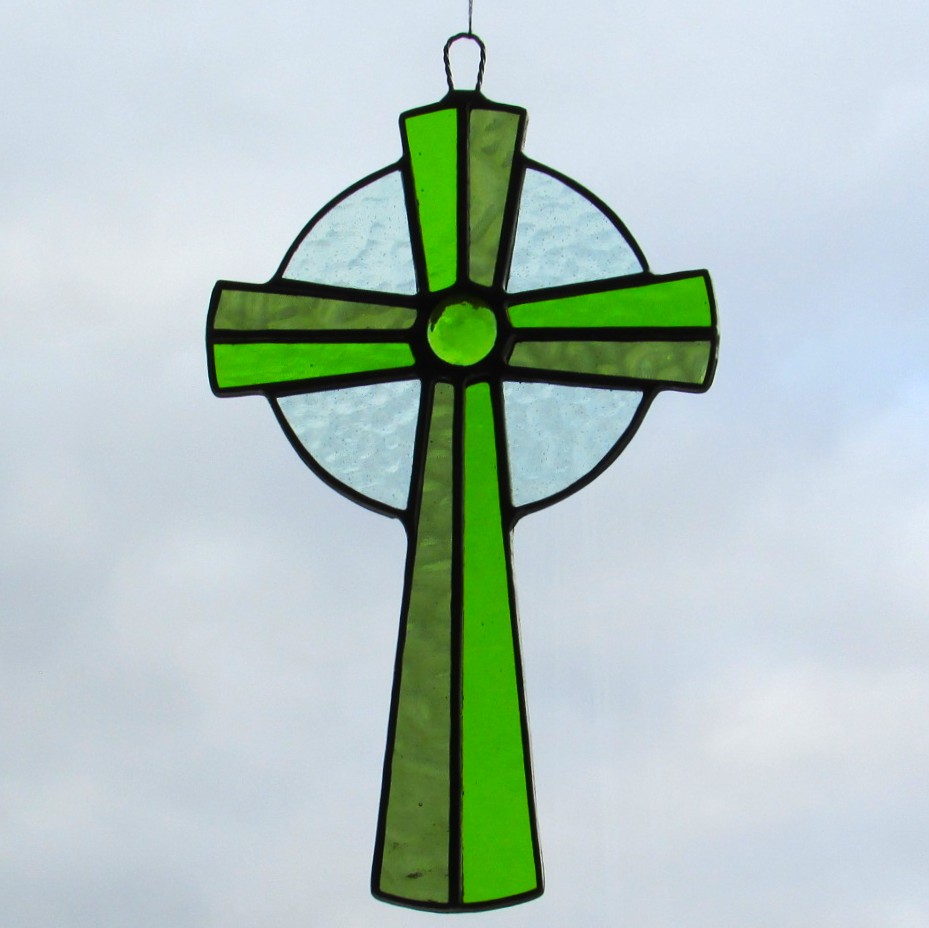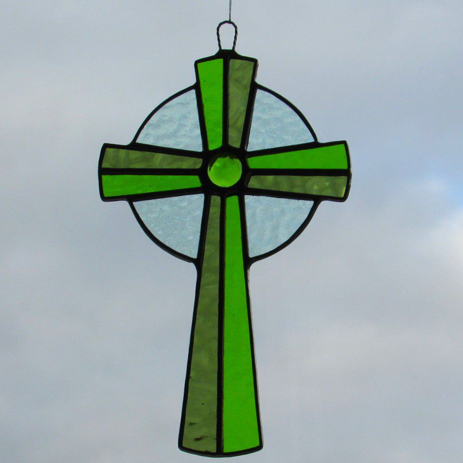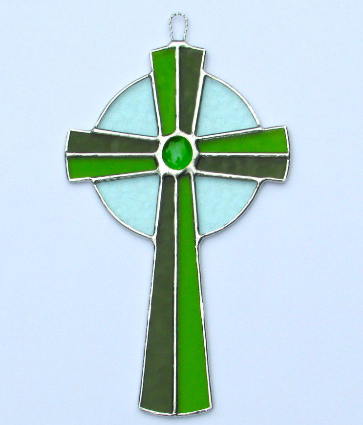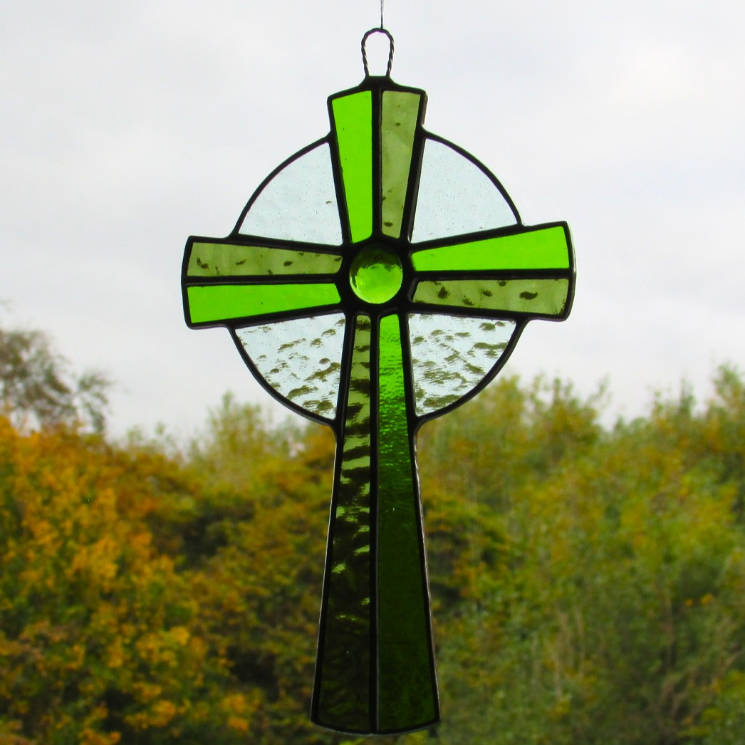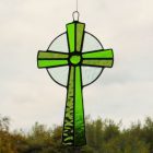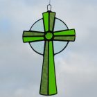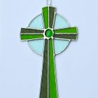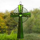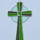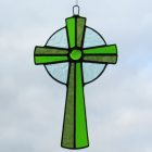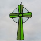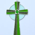 Stained Glass Celtic cross in a selection of green textured glass (2)