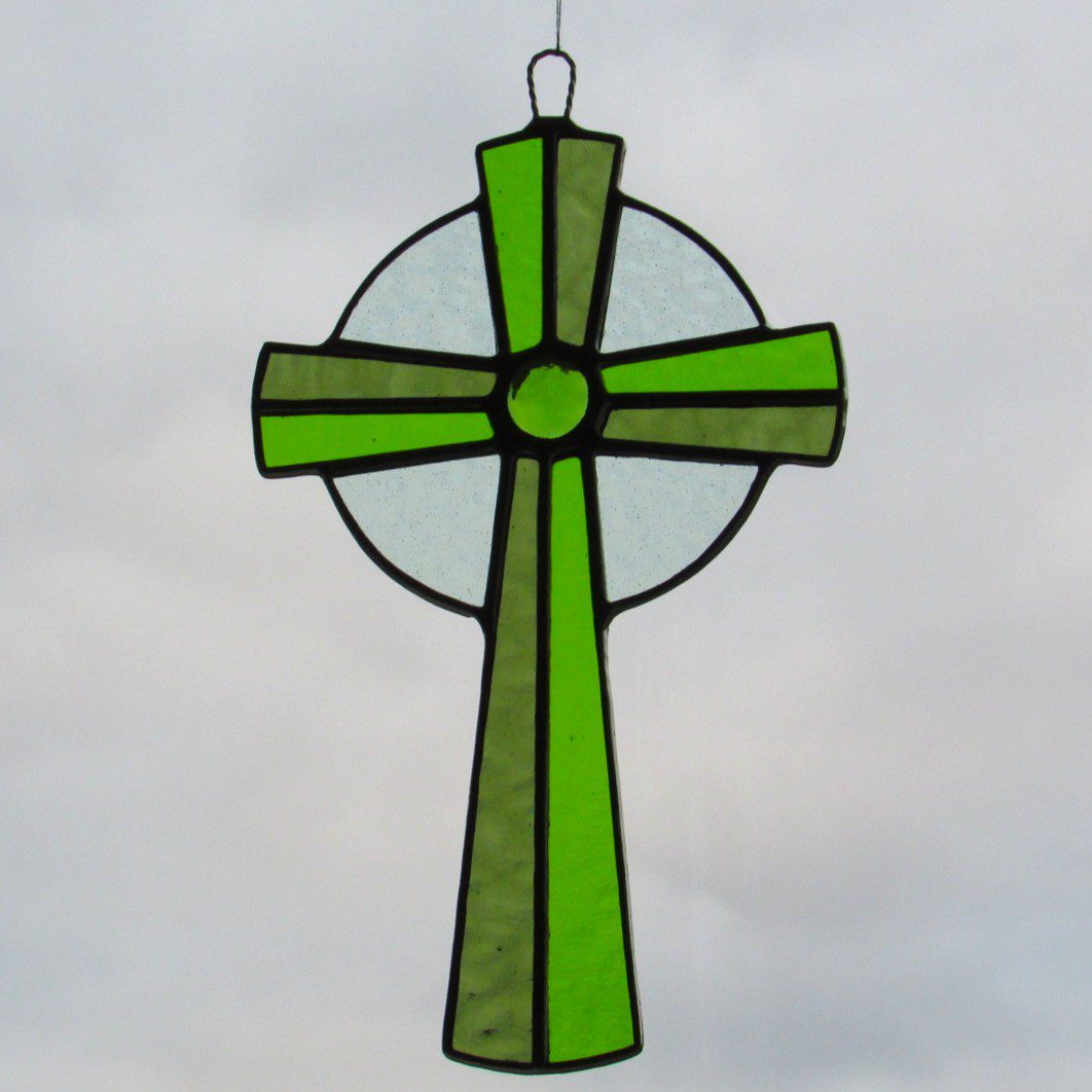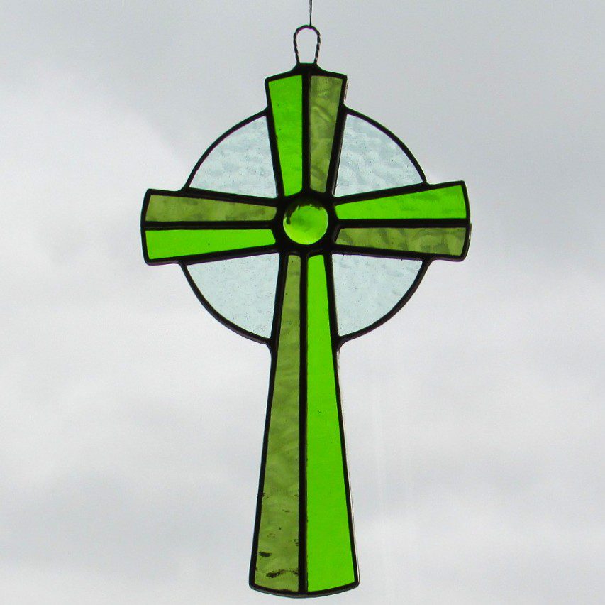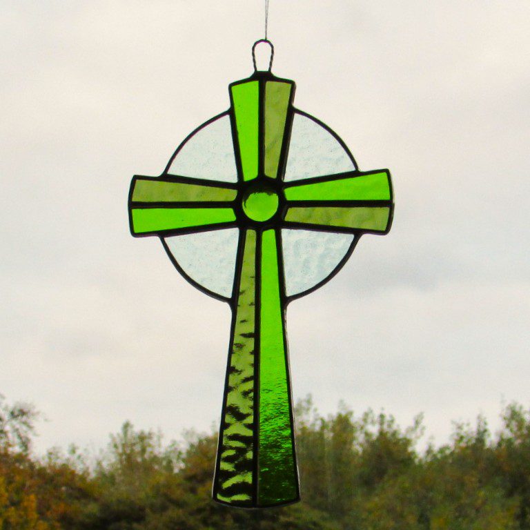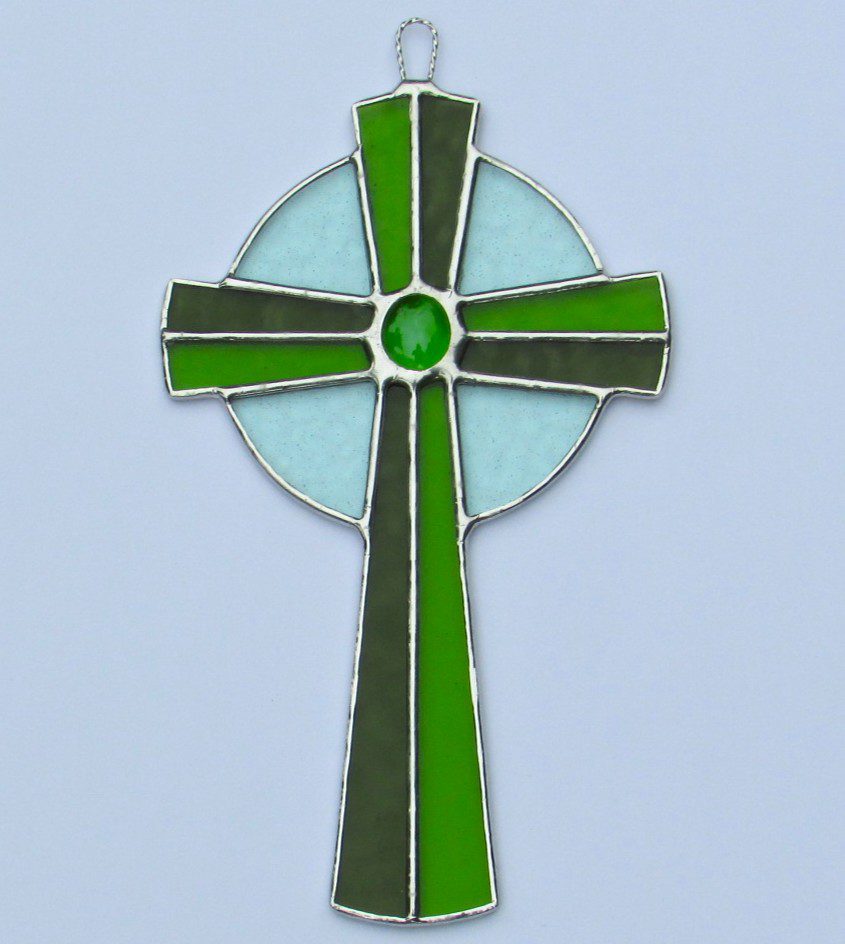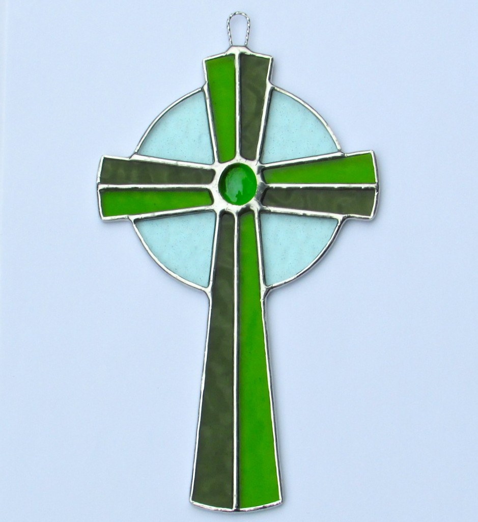 Stained Glass Celtic cross in a selection of green textured glass (2)