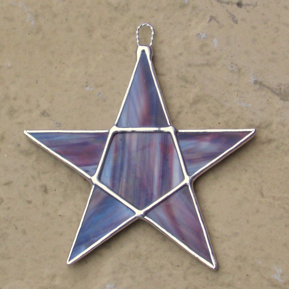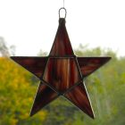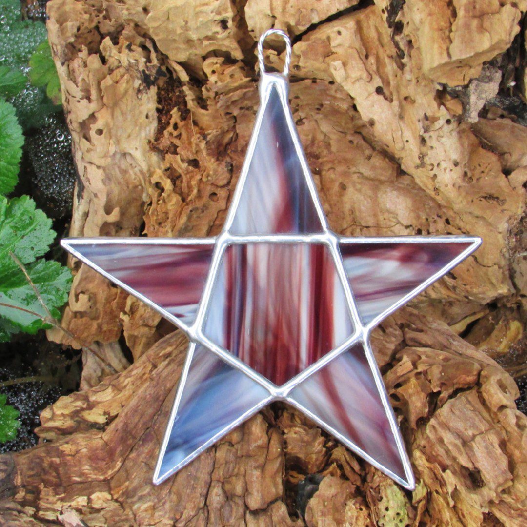 Stained Glass Pentagram Star in a sierra red pearl streaky textured glass