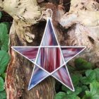 Beautiful stained glass abstract suncatcher (Pentagram Star) which I handcrafted and designed by myself using the traditional copper foiling method. The design is effective with the glass colours using a sierra red pearl streaky glass slightly seeded.