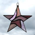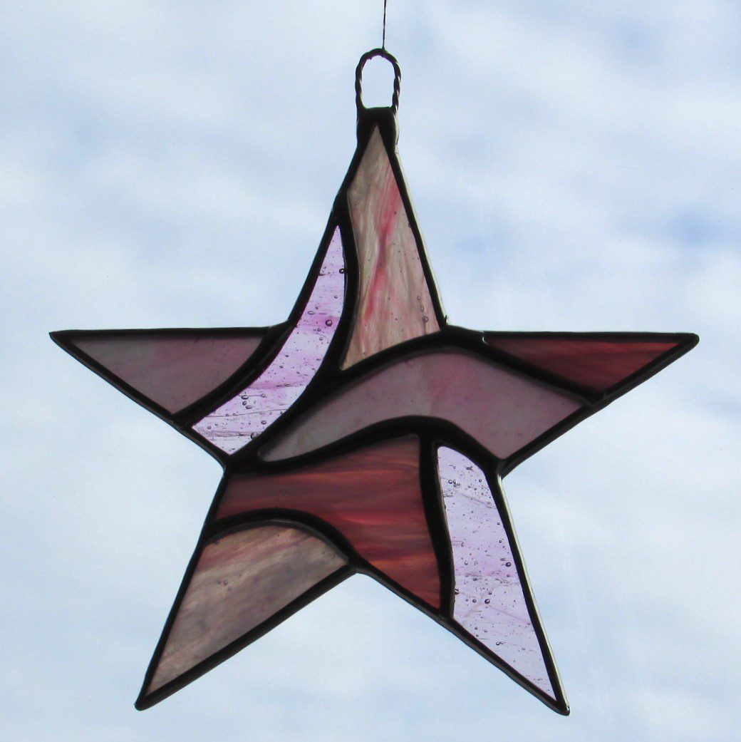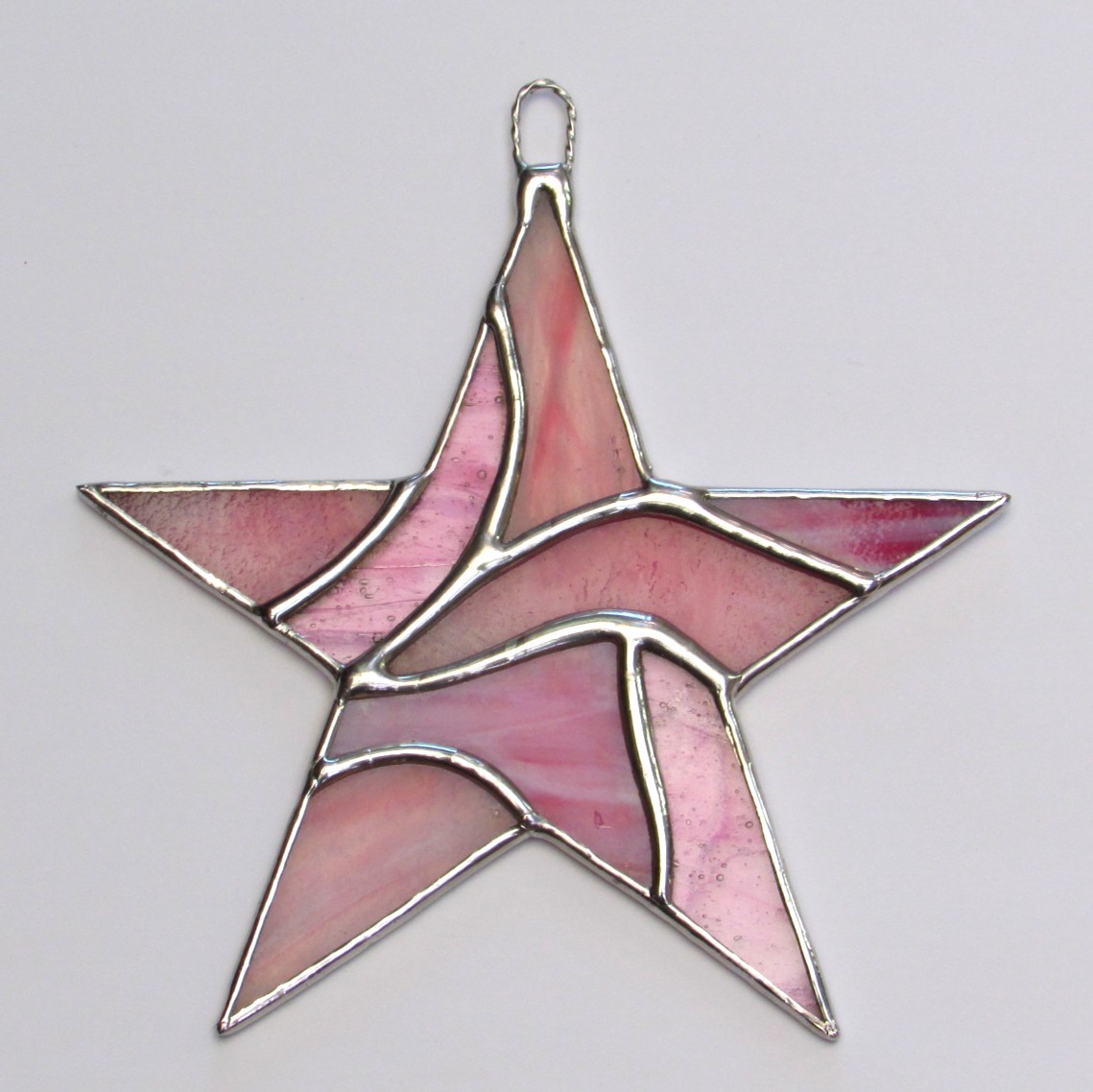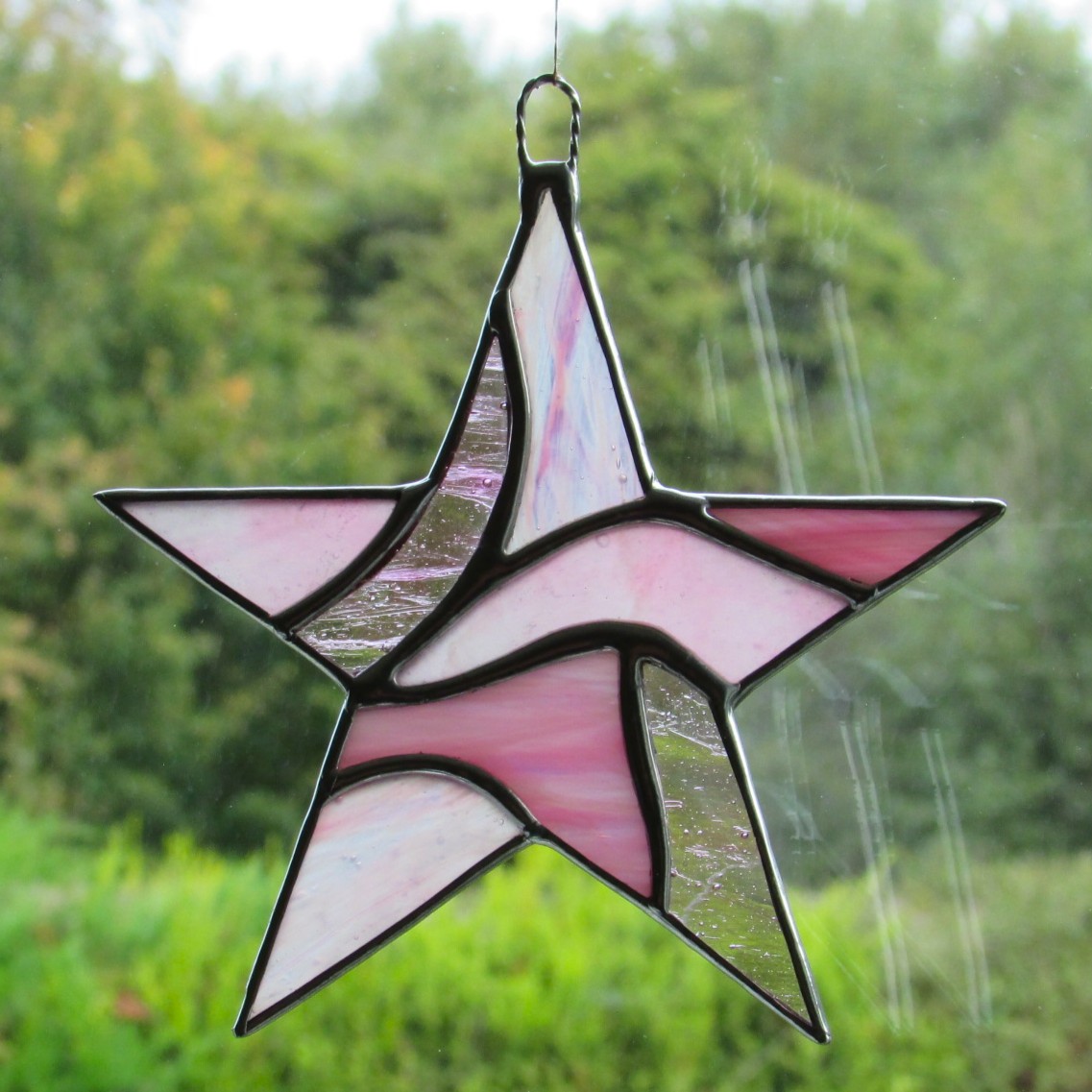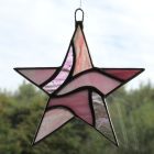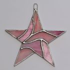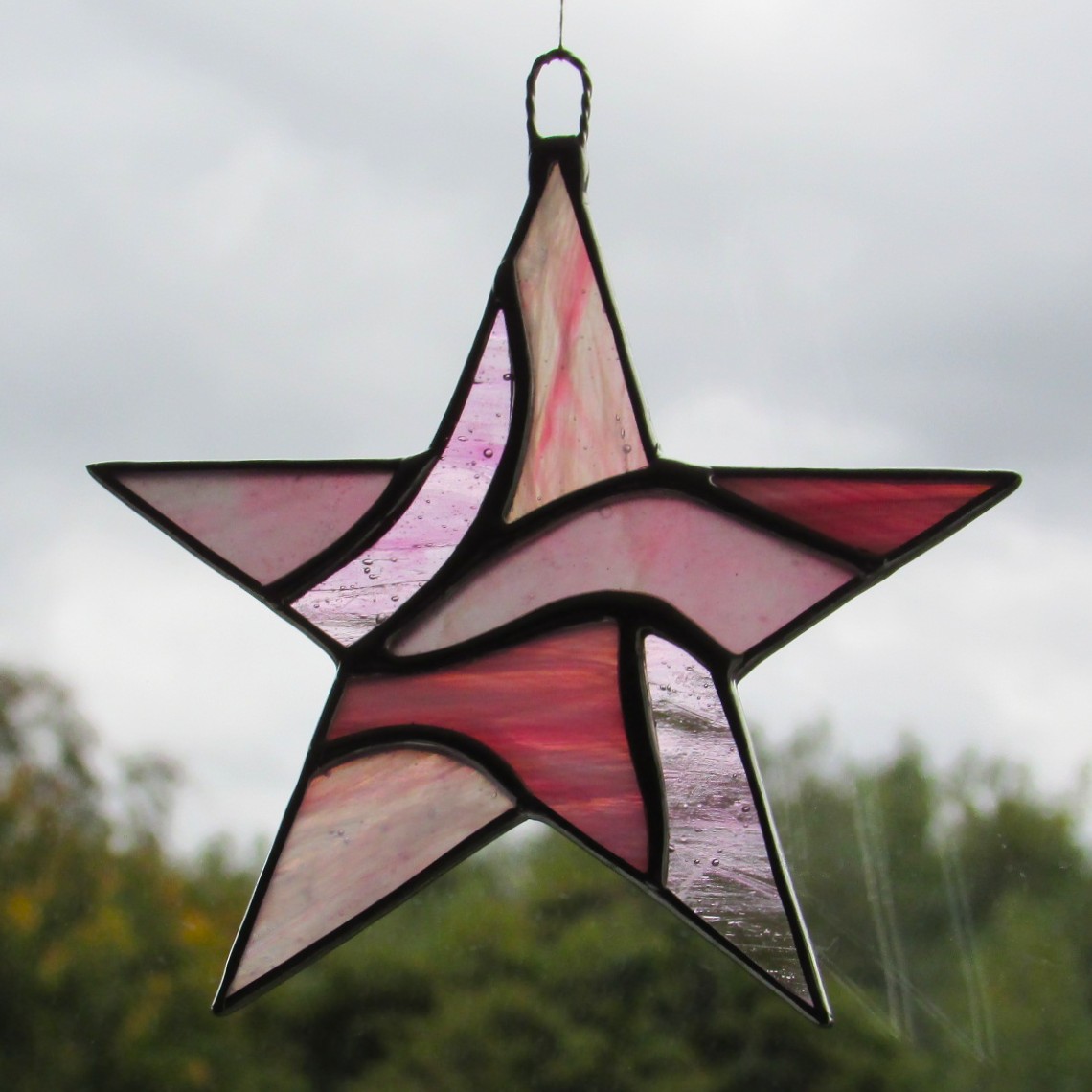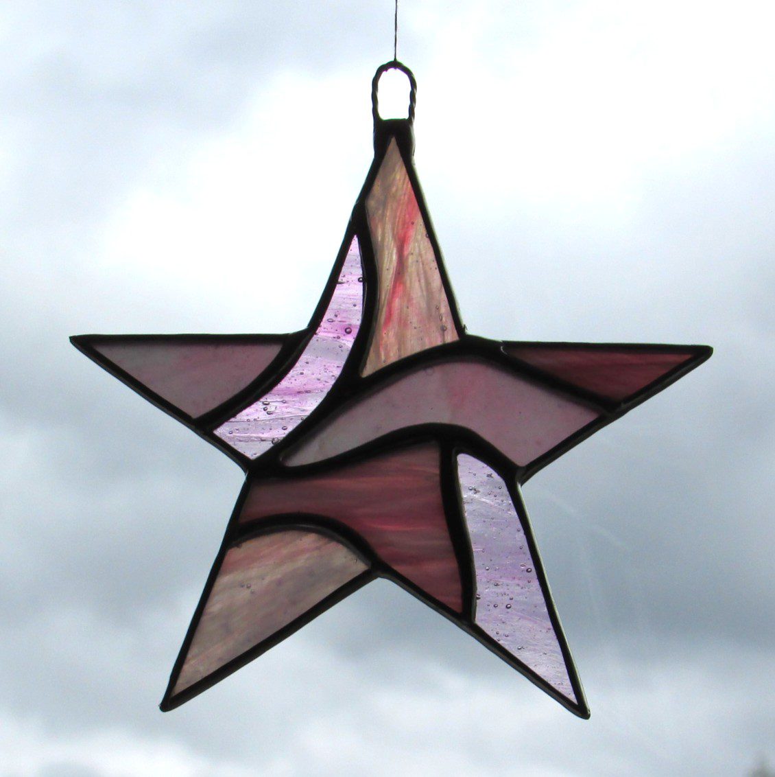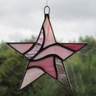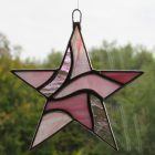 Beautiful stained glass abstract suncatcher (Star) which I handcrafted and designed by myself using the traditional copper foiling method. The design is effective with the glass colours using pink clear, pink streaky, pink semi translucent textured glass slightly seeded.